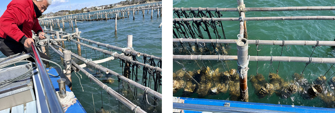 松島の真牡蠣従事者である船長と共に、通常のツアーでは経験できない、実際の棚作りから仮殖、養殖まで年間を通して体験できるのが魅力です。