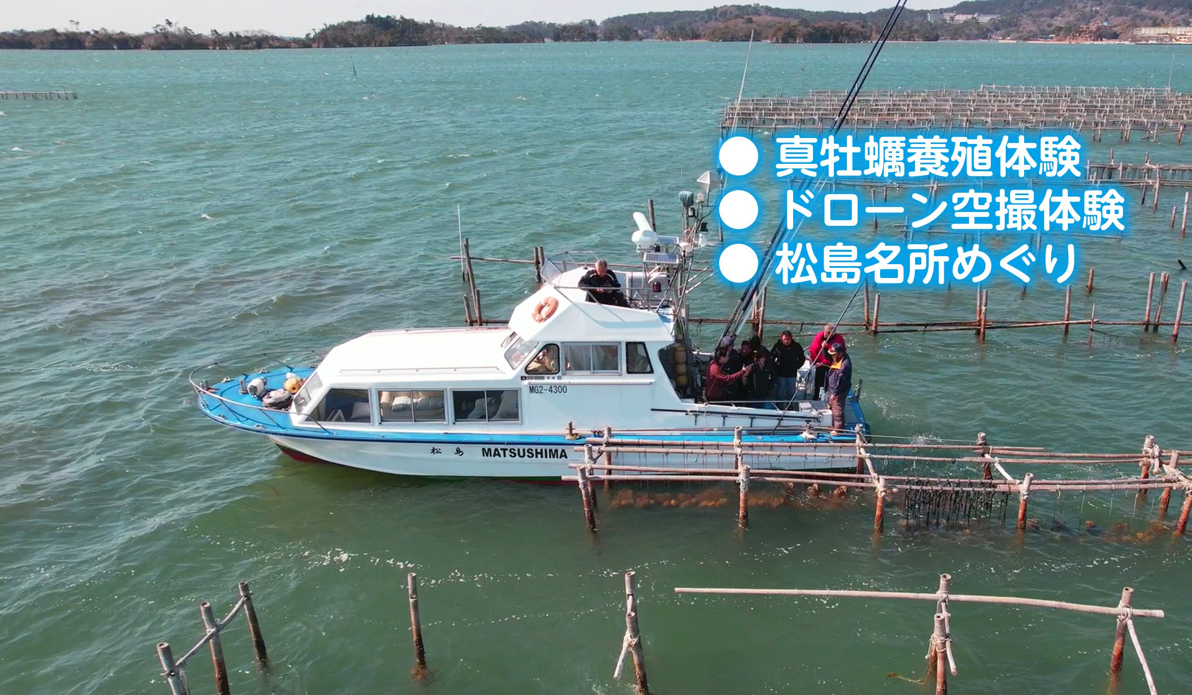 【スケジュールの一例】 ▶松島港集合 ▶松島港出発 牡蠣だな飼育を体験 ▶松島名所めぐり ▶昼食後、解散 ※ドローン空撮オプションで広大な松島風景を動く映像でご提供します 。(別途料金) ![]() ※牡蠣など苦手な方には、2024JAPAN BURGER CHAMPIONSHIP優勝実績のある人気ハンバーガーショップ「ハリーズジャンクション」さんの食事も可能です。 ![]() |